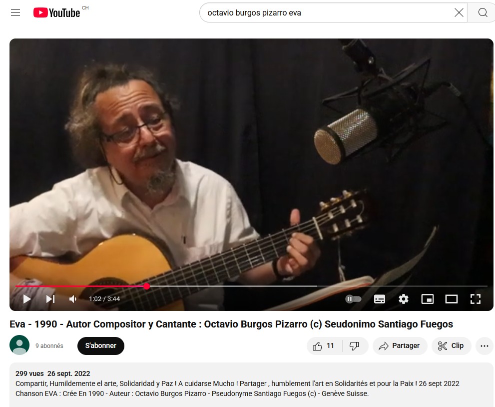 Liens Créations Chansons Interprétations ici (sur youtube ) 1985-2025 O.B.P -GE CH (c): Cancion EVA - Cancion Fue como un planeta - Cancion Mi Pelotita de Lana